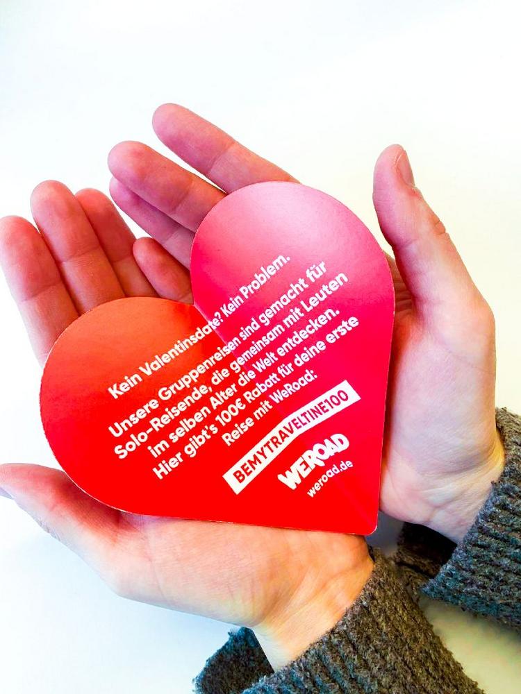 Travel Coordinator, Tourguides für die Kleingruppen-Trips bei WeRoad, zetteln ab dem Nachmittag des 13. Februar auf den Straßen in Mitte, Prenzlauer Berg und Friedrichshain in Berlin sowie in der Kölner Südstadt, im Belgischen Viertel und in den Gastronomien und Coworkings außerdem ein regelrechtes Rote-Flaggen-Quiz an. „Red Flags“ werden bei WeRoad beim Wort genommen – und verwandeln sich vom absoluten Warnsignal im Datingzirkus in reale Traumreiseziele, die entdeckt werden wollen.