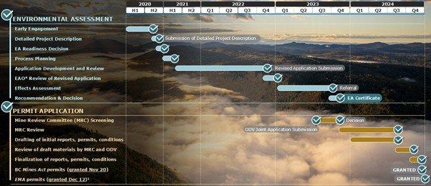 – The Mines Act (British Columbia) permits grant the Company the ability to proceed with the construction, operation and reclamation activities on each of the sites outlined within the scope of the Project. The Environmental Management Act (British Columbia) permits pertain to any project-related discharges to the environment, including water and air, and the framework and limitations thereof, within the areas outside of the immediate mine site boundaries.