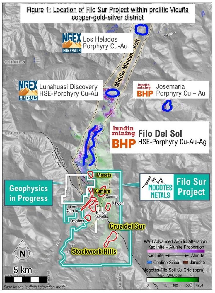 Mogotes Metals Inc. is a mineral exploration company exploring for copper and gold in the prospective Vicuña district of Argentina and Chile. Mogotes flagship project, Filo Sur, adjoins the large Filo del Sol Copper-gold-silver discovery, and is along the same N-S trending belt as the Filo Del Sol – Aurora and NGEx Minerals Lunahuasi and Los Helados copper-gold deposits.