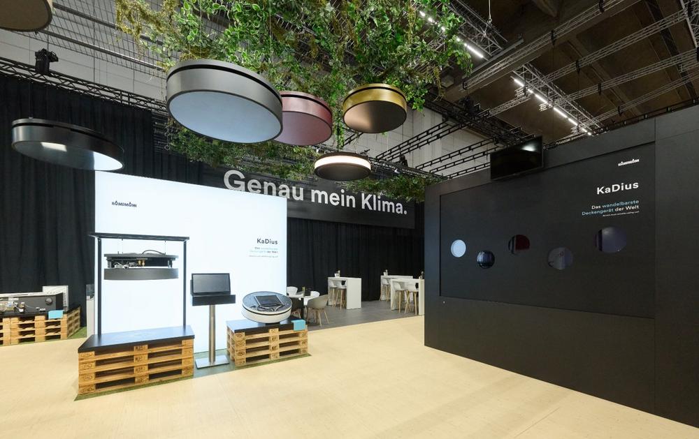 • Schwebende Exponate rückten energieeffiziente Deckengeräte zum Heizen, Kühlen und Lüften in den Fokus.