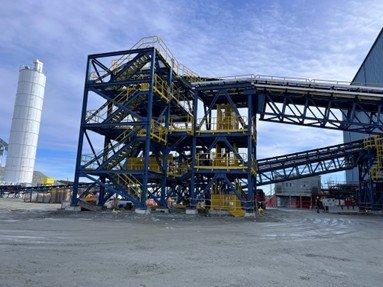 • Coarse ore stockpile building, reclaim tunnel, and apron feeder construction nearly complete and progressing toward pre-commissioning;