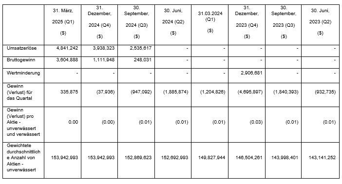 Ausgewählte Finanzinformationen, die nachstehend aufgeführt sind, basieren auf den ungeprüften, verkürzten konsolidierten Zwischenabschlüssen des Unternehmens für jedes der aufgeführten Quartale, die gemäß den für die Quartalsberichterstattung geltenden IFRS erstellt wurden, und sind diesen entnommen: