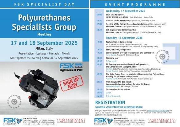 Register now: FSK Specialist Day Polyurethanes at Cannon SpA in Milan, Italy