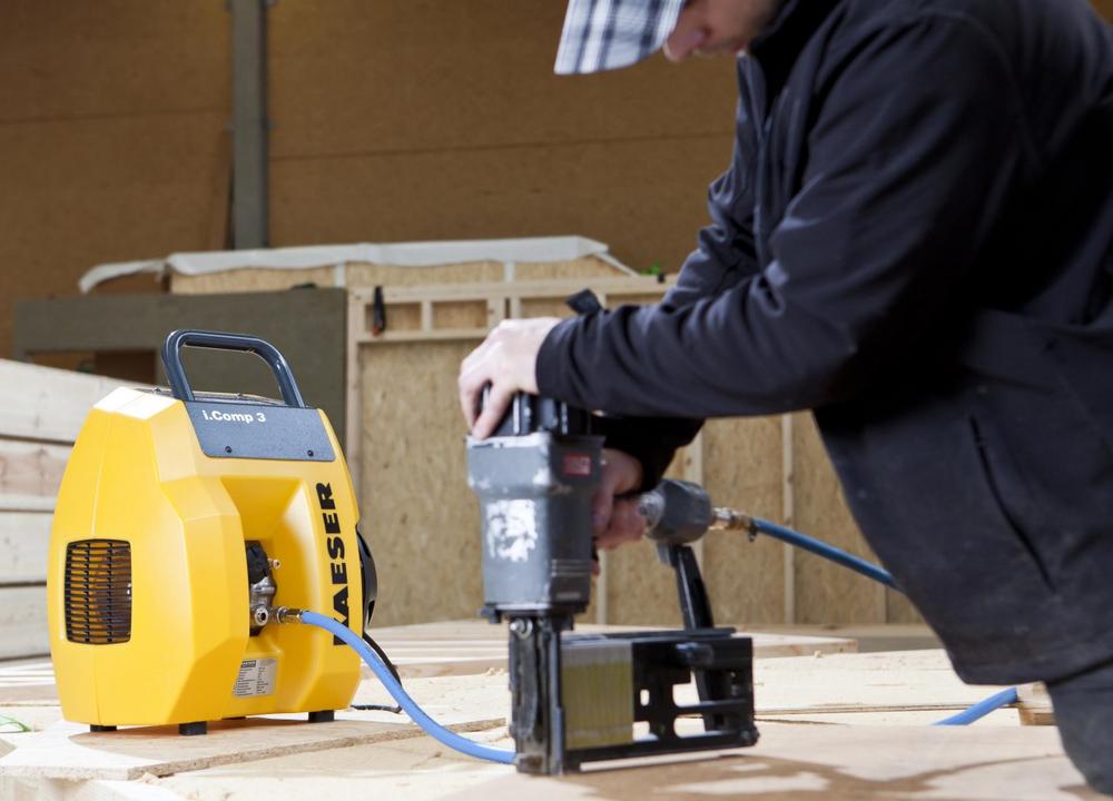 Whether for construction sites, workshops or woodshops, Kaeser’s i.Comp 3 is an invaluable partner wherever flexible and oil-free compressed air up to 11 bar is needed. This compact power- house is also exceptionally lightweight, which makes struggling to carry around heavy equipment a thing of the past.