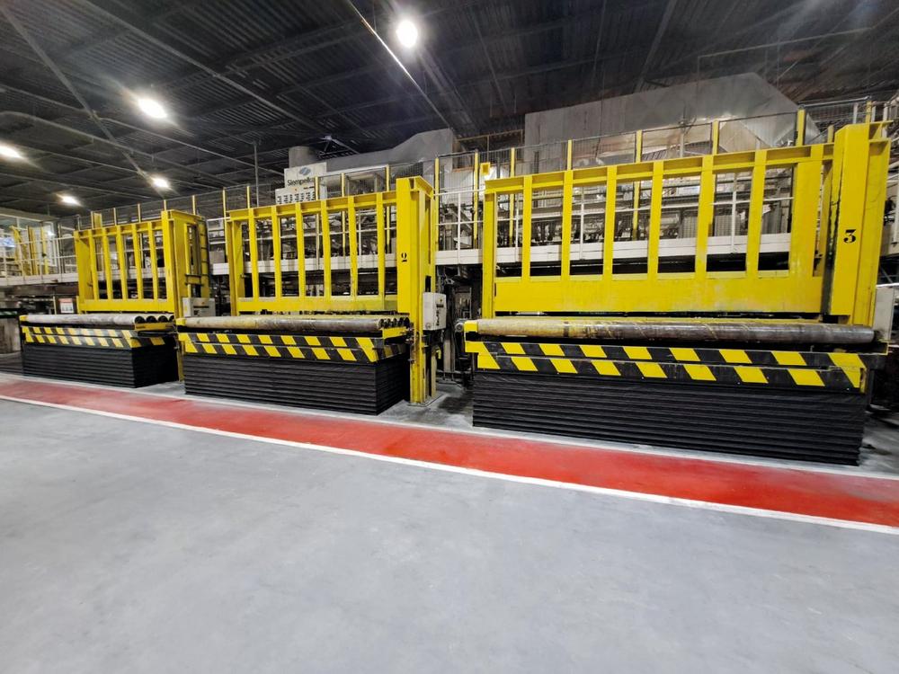 Im Rahmen einer Nachrüstung wurden die 1.200 x 4.000 mm großen und auf eine Höhe von 850 mm ausfahrbaren Hubtische mit Faltenbälgen der Reihe ELASTIC versehen. Die Produktreihe bietet zahlreiche Kombinationsmöglichkeiten, deren Grundkomponenten, Material, Form, Verarbeitungsart und Abmessung auf den jeweiligen Einsatzbereich abgestimmt werden. Die Befestigung erfolgte hier über Metallendrahmen, ist aber auch über Klettbänder möglich.
