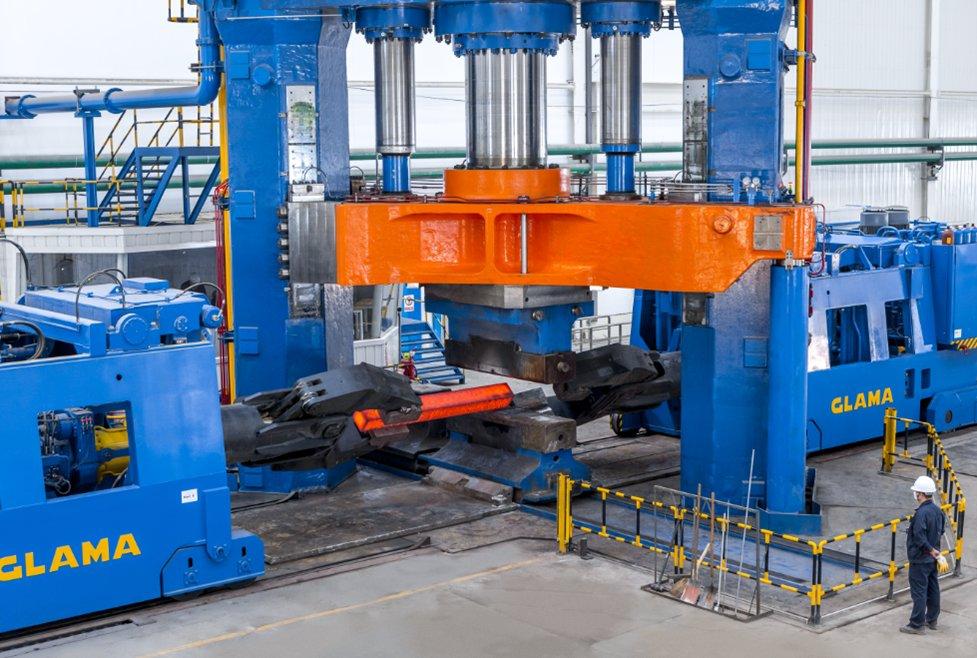 The press will utilize an open-die forging process that improves the microstructural quality of materials through grain refinement, enhancing overall material performance. This process is particularly effective for preparing cast ingots in an upsetting stage, which ensures uniform deformation to the material core. The forging accuracy of approximately ±1 millimeter ensures highly precise final products. The pre-deformed ingots will then undergo final forging on Jiuli Yongxing’s existing SMX 900 / 18 MN radial forging machine, also supplied by SMS in 2019. The new press and radial forging machine will form a fully integrated forging line. The forging frequency can reach up to 122 strokes per minute, enabling high productivity rates.