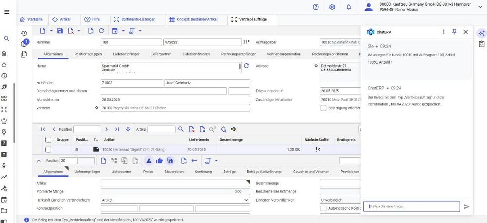 Aufbauend auf dem leistungsstarken und hochmodernem ERP-System bringt VlexPlus mit Version 6.5 einen smarten KI-gestützten Assistenten ins Spiel: ChatERP macht die Bedienung noch einfacher, schneller und intuitiver. Der Anwender kommuniziert in Alltagssprache mit dem VlexPlus KI-Assistenten. ChatERP ist direkt in VlexPlus integriert und erkennt die Absichten der Nutzer im Kontext ihrer jeweiligen Rolle, Aufgaben und Unternehmensprozesse. Das macht den Assistenten zu einem echten Beschleuniger für tägliche Geschäftsprozesse.