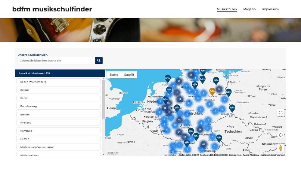 Wer für sich oder sein Kind Musikunterricht sucht, fragt sich oft: Wo finde ich eine gute Musikschule in der Nähe? Der Bundesverband der Freien Musikschulen (bdfm) bietet jetzt mit dem Musikschulfinder unter www.musikschulfinder.de ein benutzerfreundliches Online-Tool, um gezielt Musikschulen zu finden.