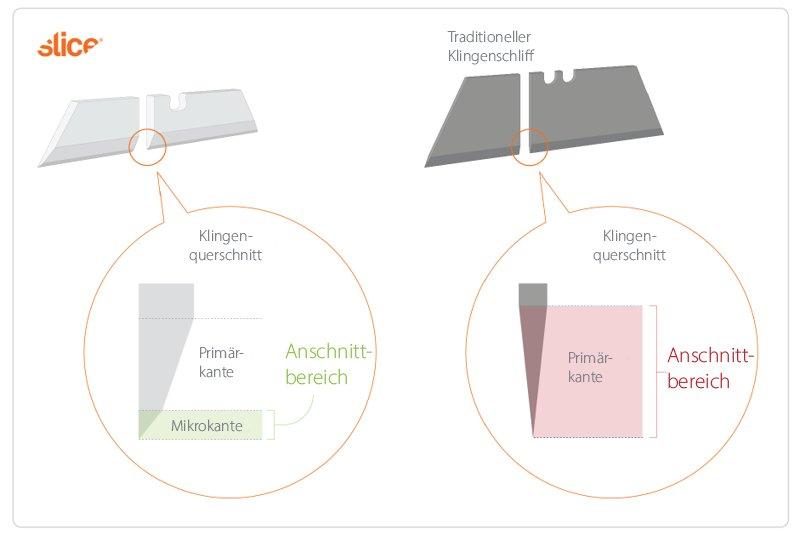 Die Wahl des Klingenmaterials ist jedoch nicht nur ein Aspekt von Sicherheit und Langlebigkeit. Neben der auch wirtschaftlich relevanten Tatsache, dass die SLICE®-Keramikklinge bis zu 11-mal länger hält als eine einfache Metallklinge, ist das Material außerdem nicht leitfähig, rost- und funkenfrei, chemikalienresistent und hygienisch. Damit eignen sich SLICE® Sicherheitsmesser auch perfekt für Anwendungen im anspruchsvollen Umfeld der Lebensmitte- oder Pharmaindustrie.