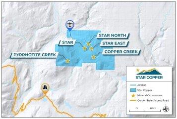 Angesichts seines geologischen Milieus, seiner strukturellen Komplexität und der dokumentierten Kupfergehalte könnte Copper Creek, das sich etwa zwei Kilometer (2 km) südöstlich des Bereichs der aktuellen Bohrkampagne befindet, eine südöstliche Erweiterung eines größeren mineralisierten Systems darstellen, das sich von der Main Zone aus erstreckt. Copper Creek könnte zu einer Satelliten- oder Verbindungszone innerhalb eines größeren, durchgehenden kupferhaltigen Trends auf dem Konzessionsgebiet ausgebaut werden. Im Fokus der aktuellen vollständig finanzierten Kampagne steht die Erweiterung der bestehenden Lagerstätte auf dem Projekt Star durch die Exploration der in der Vergangenheit ermittelten und bekannten Mineralisierungsereignisse bei Star Main, Copper Creek, Star North, Star East und weiteren damit verbundenen Zielorten (siehe Abbildung 1).