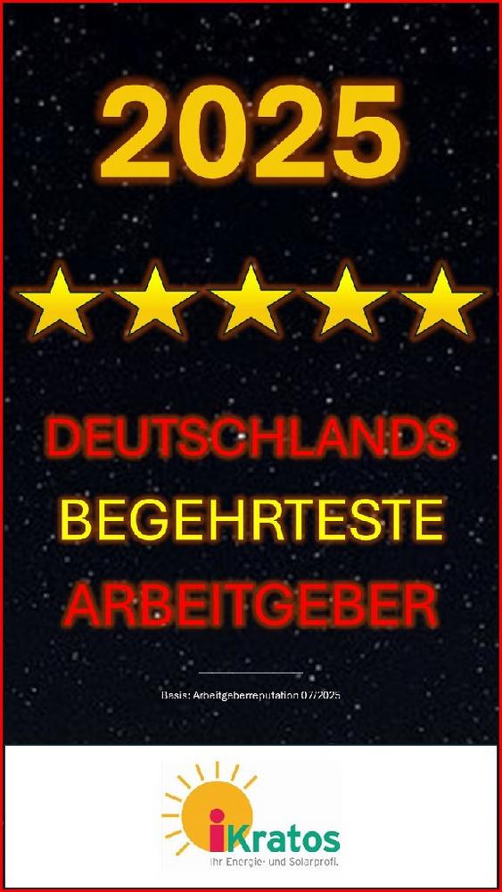Die Auszeichnung als "Deutschlands begehrtester Arbeitgeber 2025" unterstreicht die herausragende Position der iKratos GmbH in diesen Kategorien und hebt das Unternehmen als Vorreiter in der Solar- und Wärmepumpenbranche hervor.