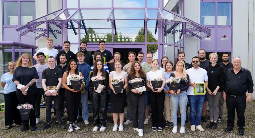 Denis Koop, Lukas Obst und Emre Türegün als Fachinformatiker/in (Systemintegration), Josuah Redikop, Robert Tobisch, Johann Derksen und Daniel Stein als IT-System-Elektroniker, Rabia Akkas, Angelina Bese, Celina van Ringen, Abdul Rahmann und Matthias Peters als Fachkraft für Lagerlogistik sowie Ronja Smiatek als Mediengestalterin den Abschluss ihrer Ausbildungszeit.
