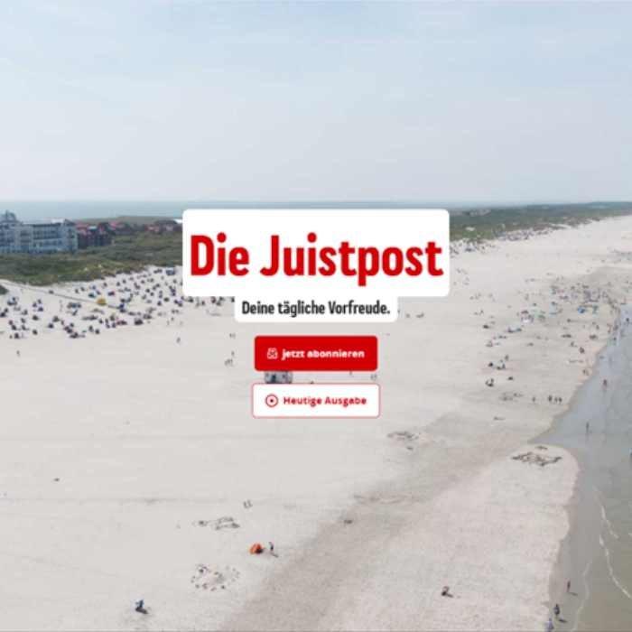 Die Juistpost kann kostenfrei über die Webseite juistpost.de abonniert werden. Interessierte geben einfach ihre E-Mail-Adresse sowie Vor- und Nachnamen ein und erhalten ab sofort täglich wertvolle Informationen für ihren Aufenthalt auf Juist.
