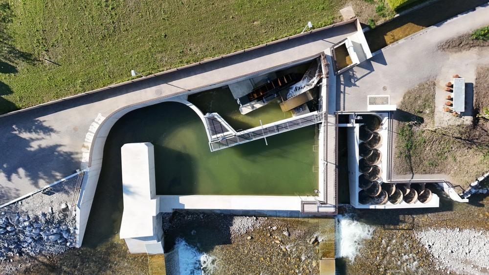 In der Schweizer Gemeinde Steffisburg wurde die Müllerschwelle in der Zulg zum Schutz vor Hochwasser um zwei Meter abgesenkt. Ein technischer Fischpass stellt die Fischgängigkeit der für Fische nach wie vor unüberwindbaren Sperre sicher. Herzstück der neuen Anlage: Ein riesiges Schöpfrad, das Wasser ohne Fremdenergie in den nun höhergelegenen Mühlebach befördert. Die präzise Regelung aller Wasserzu- und -abläufe übernehmen massgefertigte Armaturen, die keine 70 km entfernt im Sistag Werk Eschenbach LU gefertigt wurden.
