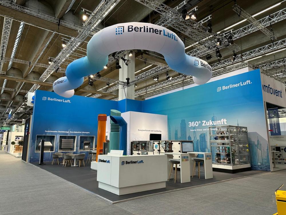 Ihre primäre Funktion ist die Generierung von Fernwirkung und die klare Kennzeichnung eines Standortes. Große, bedruckte Inflatables, wie zum Beispiel klassische Kugeln mit Firmenlogo, dienen als weithin sichtbare Markenbotschafter und Orientierungspunkte in vollen Hallen. Darüber hinaus ermöglichen moderne Fertigungstechniken auch komplexe, individuelle Formen. Ein organisch geschwungenes, auf die Corporate Identity abgestimmtes Objekt, wie der blau-weiße „Berliner Luft“-Schlauch, wird so nicht nur zum Träger der Markenbotschaft, sondern auch zum prägenden Designelement, das den Luftraum über dem Messestand einzigartig definiert.