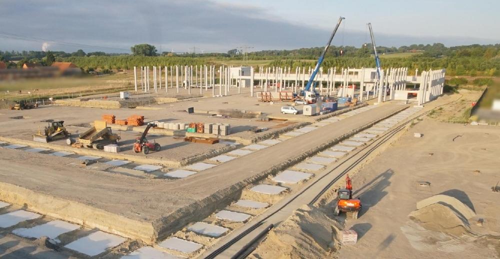 Im Gewerbegebiet Tetekum-Büschkämpe hat die Montage der Hallenstützen begonnen – ein sichtbarer Meilenstein beim Bau des neuen Firmensitzes der VEDDER GmbH. Parallel zur Montage der Hallenstützen entsteht der Rohbau des Bürogebäudes. Die Niederlassung Münster des Bau- und Dienstleistungsunternehmens Goldbeck realisiert als Generalunternehmer die rund 21.000 Quadratmeter große Produktionshalle sowie 4.500 Quadratmeter Büro- und Sozialflächen.