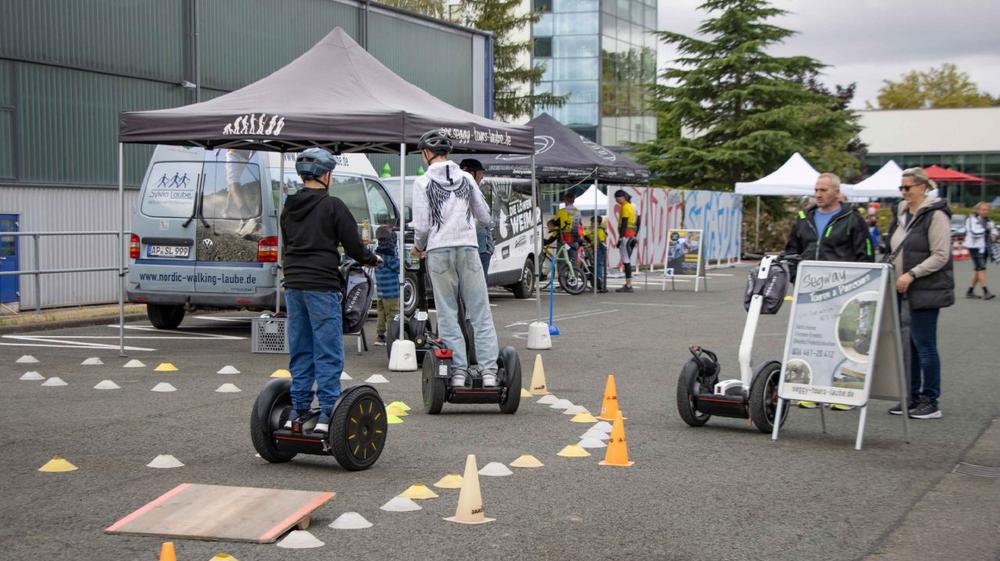 Darüber hinaus gab es ein Programm für die ganze Familie mit Hüpfburg, Fußballkanone, Segway-Parcours und Graffiti-Workshop. Die Besucherinnen und Besucher konnten ihr Wissen über die Unternehmen in einem Quiz an den Infoständen unter Beweis stellen. Wer alle Fragen richtig beantwortete, erhielt neben einer kleinen Stärkung auch die Chance auf den Hauptpreis.