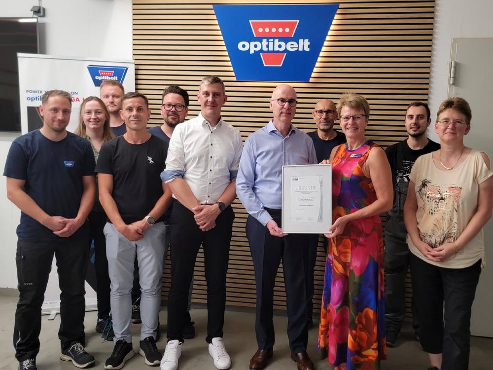 Der feierliche Rahmen wurde auch genutzt, um das 30-jährige Bestehen der OPG innerhalb der Arntz Optibelt Gruppe zu würdigen. Für ihr langjähriges Engagement nahm Werkleiter Lars Machold, stellvertretend für die OPG, eine Auszeichnung durch Geschäftsführer Konrad Ummen sowie Heike Kutz von der Industrie- und Handelskammer entgegen.