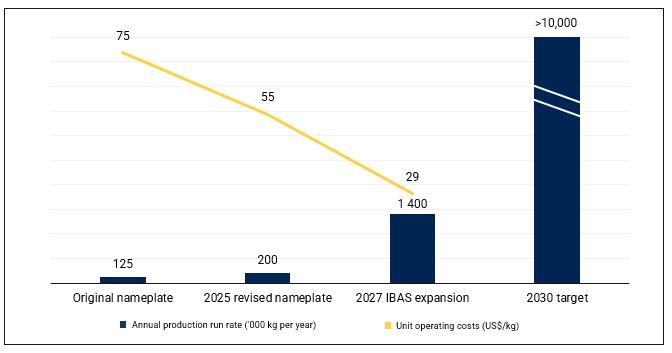 –          Nennkapazität von Titanpulver um 60 % auf 200 Tonnen pro Jahr (tpa) erhöht, angetrieben durch betriebliche und technologische Prozessverbesserungen ohne zusätzliche Investitionsausgaben