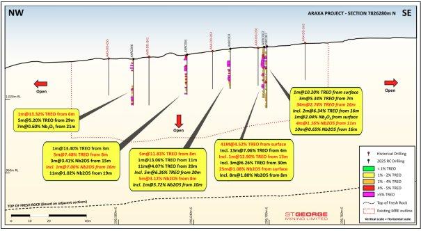 St George Mining Limited (ASX: SGQ) („St George“ oder „das Unternehmen“) freut sich bekannt zu geben, dass zusätzliche hochgradige Seltene Erden- und Niobium-Mineralisierungen durch die neuesten Analysen aus Bohrungen im zu 100 % unternehmenseigenen Araxá-Projekt in Minas Gerais, Brasilien, bestätigt wurden.