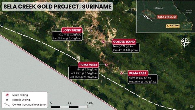 Bis heute hat Miata 1.850 m Bohrungen in Puma abgeschlossen. Mit Ausnahme eines Bohrlochs (SEL-026) durchschnitten alle Bohrlöcher goldhaltige Zonen und lieferten wichtige Informationen für die Planung weiterer Bohrungen und Schürfungen über die 2,7 km lange Streichlänge des Ziels.