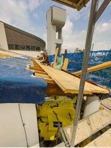 Die Sanierung der katholischen Kirche Hl. Geist in Schöftland umfasst den Einsatz eines Fallschutzsystems. Sturzauffangmatten (SAM) von der Firma SpanSet AG werden verwendet, um den Aufprall von Bauarbeitern auf dem Dach abzufedern. Diese SAM werden gemäss den neuen Arbeitssicherheitsvorschriften eingesetzt, die eine verbesserte Bauarbeiter-Sicherheit fordern. Das SAM hat sich unter den strengen Kontrollen der Schweizerischen Unfallversicherungsanstalt (Suva) bewährt und soll europaweit eingeführt werden. Das Projekt liefert wertvolle Erfahrungen zur weiteren Verbesserung der Arbeitssicherheit.