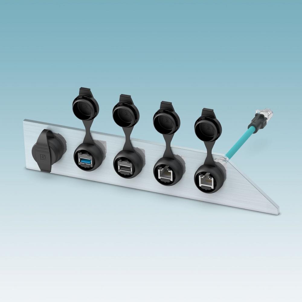 Die DSI umfassen Kupplungsmodule wie USB-Typ A 2.0, USB-Typ A 3.0 und RJ45 CAT6A sowie Kabelanschlussmodule in der Ausführung RJ45 CAT6A. Durch die erhöhte IP-Schutzklasse von IP65/IP67 bei geschlossenem Schutzdeckel sind die DSI ideal für den Einsatz in industriellen Umgebungen. Sie ermöglichen eine direkte, einfache und schnelle Durchführung von z. B. Updates und Wartungsarbeiten an geschlossenen Schaltschränken und Geräten, wodurch lange Prozessunterbrechungen vermieden werden. Die DSI eignen sich für die Vorderwandmontage bei Wandstärken von 1 mm bis 5 mm. Durch den standartisierten Wandausbruch von Ø22,5 mm ermöglichen die Schnittstellen einen platzsparenden Einbau. Die Installation erfolgt werkzeuglos und in kurzer Zeit. Darüber hinaus besteht die Möglichkeit zur Individualisierung mit eigenem Logo.
