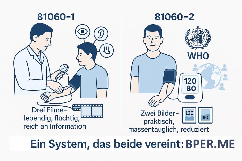 Beide Normen haben ihre Verdienste. 81060-1 liefert diagnostische Tiefe, 81060-2 brachte die Blutdruckmessung in die breite Gesellschaft. Doch die Zukunft der Diagnostik braucht mehr: Ein System, das die Tiefe der 81060-1 mit der Alltagstauglichkeit der 81060-2 verbindet – und den Film des Kreislaufs für alle sichtbar macht.
