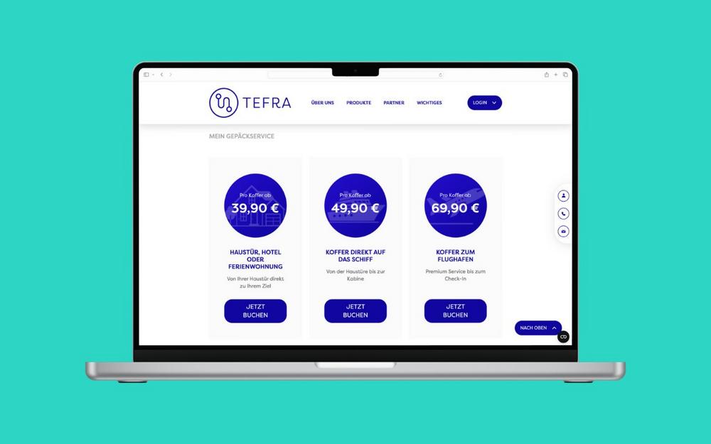 Ab sofort finden TEFRA-Partner auf der neuen Übersichtsseite alle drei Gepäckservices: Haus-Haus, Haus-Schiff und Haus-Flughafen. Das vereinfacht die Buchung erheblich, da nicht mehr einzelne Links für jeden Service separat gesucht werden müssen. „Mit der Übersichtsseite wollen wir unseren Partner:innen den Arbeitsalltag erleichtern und Buchungen schneller und unkomplizierter ermöglichen“, erklärt André Schoop, Leiter des TEFRA Gepäckservices.