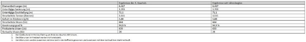 Pascal Hamelin, President und CEO, merkte dazu wie folgt an: „Ich bin sehr stolz auf das, was wir in den ersten drei Monaten der Entwicklungsphase unseres Projekts erreicht haben. Das Betriebsteam war sofort startklar, als wir Anfang Juli die Finanzierung mit Nebari abgeschlossen hatten. Zahlreiche kleine Projekte, die zu zahlreich sind, um sie alle aufzuzählen, wurden im letzten Quartal initiiert, um mit dem Vortrieb der unterirdischen Stollen zu beginnen, die Goldverarbeitung in der Aufbereitungsanlage aufzunehmen und schließlich noch vor Ende des Quartals einen ersten Doré-Barren zu gießen. Um diese Meilensteine zu erreichen, ist das volle Engagement aller Mitarbeiter erforderlich. Das Ziel für die kommenden Quartale besteht darin, die Produktion weiter auf den vollständigen kommerziellen Produktionsstatus hochzufahren.“