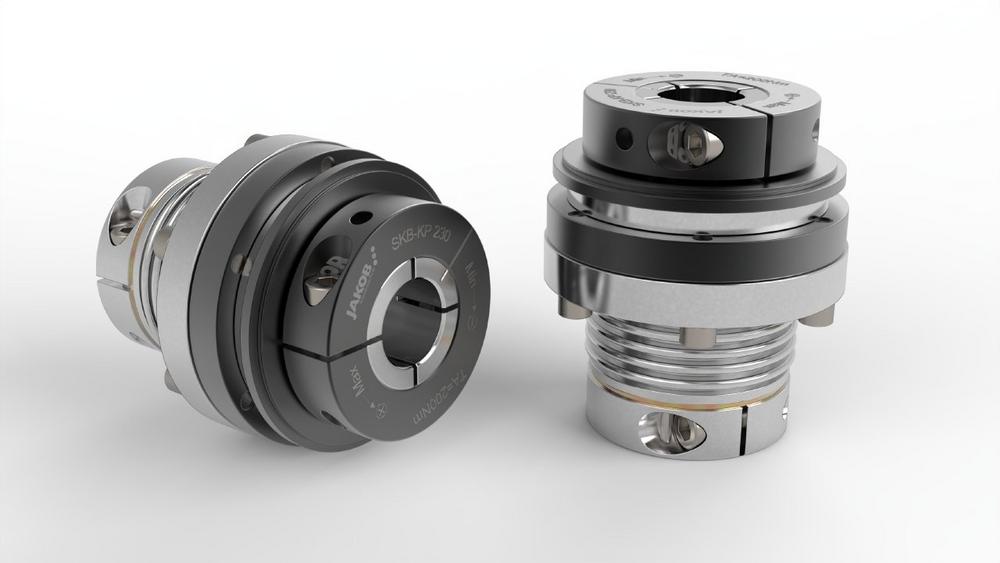 Die bewährte Sicherheitskupplung der Reihe SKB-KP ist seit Jahrzehnten als mechanischer Schutz von Antriebsaggregaten im Einsatz. Insbesondere als Kollisionsschutz in Vorschubachsen von Werkzeugmaschinen eingesetzt hat sie ihre Wirksamkeit bereits in hunderten von Anwendungen unter Beweis gestellt. Als Kombination aus einer Metallbalg-Servokupplung und dem einzigartigen JAKOB Sicherheitsmechanismus ist die Baureihe SKB-KP flexibel, spielfrei, kompensiert Fehlausrichtungen, hat ein geringes Trägheitsmoment und eine hohe Torsionssteifigkeit. So kann eine genaue Übertragung des Drehmoments gewährleistet werden. Durch die Verwendung von Spannsätzen konnte der Drehmoment-Einstellbereich noch einmal deutlich vergrößert werden, so können Spannkräfte von bis zu 9000 Nm sicher erreicht werden.