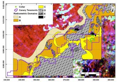 – Abgrenzung von zwei wichtigen geologischen und radiometrischen Bereichen (B und C), von denen angenommen wird, dass sie goldhaltige Horizonte im gesamten umfangreichen Konzessionspaket des Unternehmens beherbergen.
