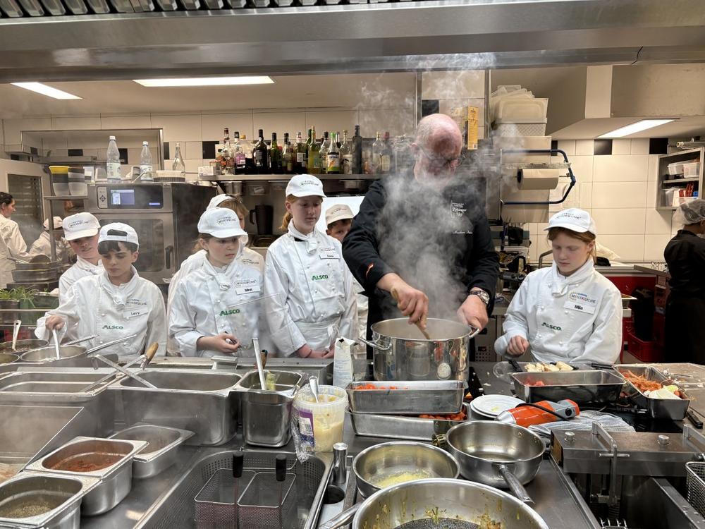 Zum Auftakt stand – wie immer – eine Hygieneschulung mit Manfred Schmitz auf dem Programm. Danach ging es direkt in die Küche des Zeltinger Hofs, wo Markus Reis und Christiane Reis-Keller die Kinder herzlich begrüßten. Gemeinsam bereiteten sie eine leckere Kürbissuppe sowie eine herbstliche Kürbis-Apfel-Marmelade zu.