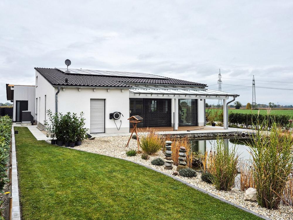 Der Bungalow in Tabertshausen mit einer Grundfläche von rund 100 m² bietet neben dem Wohnbereich für zwei Personen unter dem Dach auch Platz für ein kleines Büro. Um sich für die Zukunft aufzustellen, wünschte sich der Bauherr eine umweltfreundliche und von fossilen Brennstoffen unabhängige Wärmeversorgung. Dafür kamen Wärmepumpe und ‑speicher sowie Flächenheizung/-kühlung von KERMI zum Einsatz. Zusätzlich wurde in dem Neubau (KfW-Effizienzhaus 40) eine zentrale Wohnraumlüftung installiert – für ein optimales Raumklima aus einer Hand.