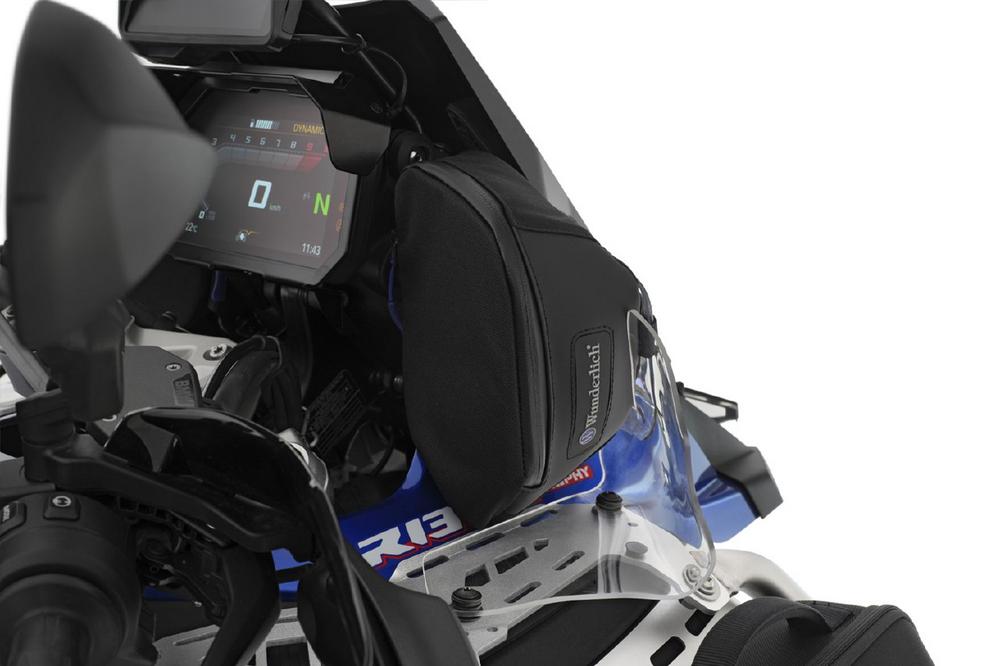 Die funktionellen Taschen dieses Sets hat Wunderlich passgenau für die Windabweiser der Verkleidung gefertigt, sodass der entstehende Raum optimal genutzt wird. Die BMW Spezialisten legten größten Wert auf gute Zugänglichkeit, damit man aus dem Sattel heraus jederzeit einfach auf den geschützten Inhalt zugreifen kann. Fahrzeugpapiere und Portemonnaie finden darin einen festen Platz. Haftstarke Klettriegel und ein LOXX-Schnellverschluss ermöglichen das schnelle, sichere Anbringen und Lösen der Taschen. Sie sitzen während der Fahrt flatterfrei und sicher. Der Mehrschichtaufbau gewährleistet Schutz und Formstabilität – auch ohne Inhalt. Die verdeckten Reißverschlüsse mit griffigen Zippern sind wasserabweisend und staubdicht. Das CORDURA®-Gewebe ist extrem abriebfest, UV-stabil, wasserabweisend und innen beschichtet. Wunderlich typisch ist das blaue Innenfutter, das den nötigen Kontrast bietet, um kleine Utensilien unterwegs leicht zu finden. Mit Wunderlich Markenlogo.