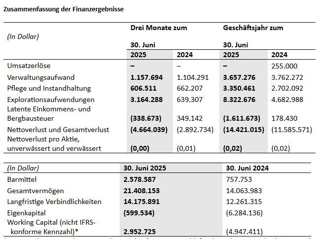 – Abcourt hat sein Working Capital für das am 30. Juni 2025 endende Geschäftsjahr deutlich verbessert und weist jetzt ein Working Capital von 2.952.725 $ aus, verglichen mit einem negativen Betriebskapital von 4.947.411 $ zum 30. Juni 2024.