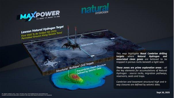 Max Power Mining Corp. („Max Power“ oder das “Unternehmen”) (CSE: MAXX – WKN: A3DJYU – OTCQX: MAXXF), freut sich bekannt zu geben, dass es die Bohrlizenz für die erste Bohrung seines geplanten Mehrfachbohrprogramms zur Erschließung natürlicher Wasserstoffvorkommen im Süden von Saskatchewan erhalten hat. Die Beschaffung von Dienstleistungen und Lieferanten, einschließlich des Bohrunternehmens, ist abgeschlossen, und die Bohrung des Lawson-Zielbohrlochs im Herzen des 200 km langen Genesis-Trends wird am oder um den 7. November 2025 beginnen.