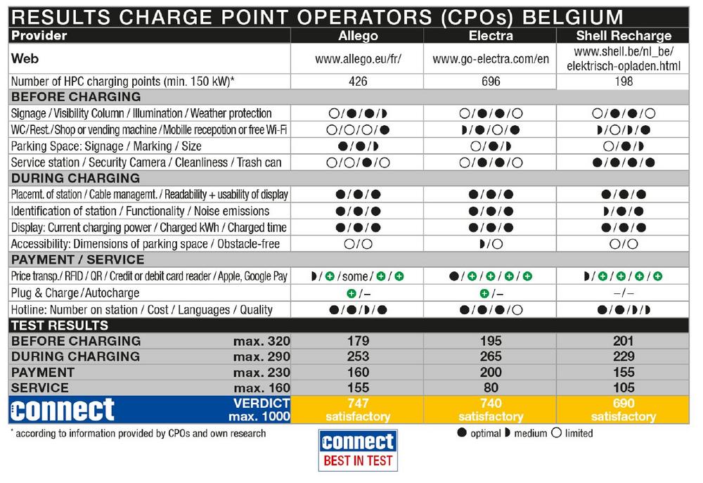 In Belgium, three CPOs – Allego, Electra and Shell Recharge – were tested, in the Netherlands four CPOs – Allego, BP Pulse, Fastned and Shell Recharge – were evaluated and in Luxembourg the CPOs Aral Pulse and Chargy were tested.