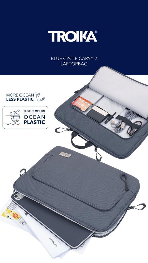 Klare Linien, funktionales Design und ein durchdachtes Innenleben – gemacht für Menschen, die viel unterwegs sind und Wert auf Stil und Nachhaltigkeit legen. Denn die BLUE CYCLE CARRY 2 besteht aus 100 % recyceltem Meeresplastik (rPET) – ein echtes Statement für bewusstes Reisen und Arbeiten.