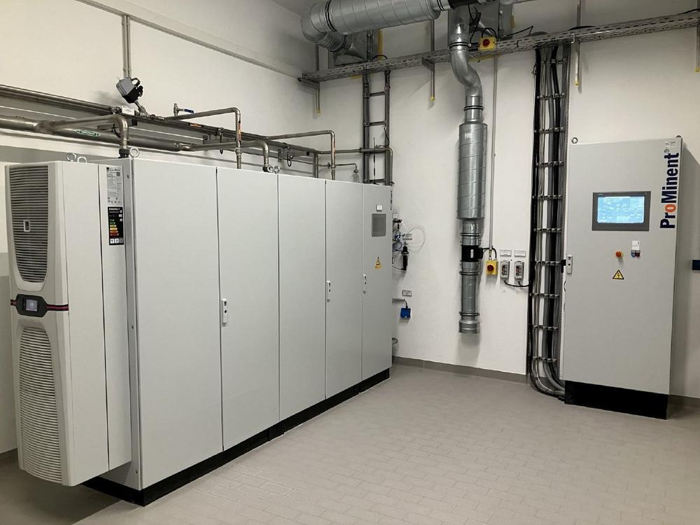 Im Zentrum steht die modulare Ozonanlage DULCOZON OZLa von ProMinent – ein System, das sich flexibel an wechselnde Abwassermengen anpasst und die Ozonzugabe präzise steuert. In Kombination mit der Aktivkohlefiltration werden Spurenstoffe wirkungsvoll entfernt. Ergänzende Systeme für Kühlwasser, Ozonverteilung, Restozongasvernichtung und Raumluftüberwachung sorgen für einen sicheren und energieeffizienten Betrieb.