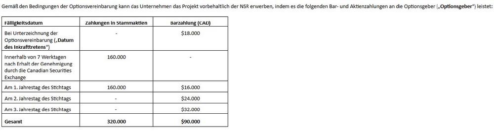 Das Unternehmen weist darauf hin, dass die NSR einer Rückkaufoption zugunsten des Unternehmens unterliegt, wonach das Unternehmen die NSR durch Zahlung von 500.000 $ an die Optionsgeber auf 1,0 % reduzieren kann.