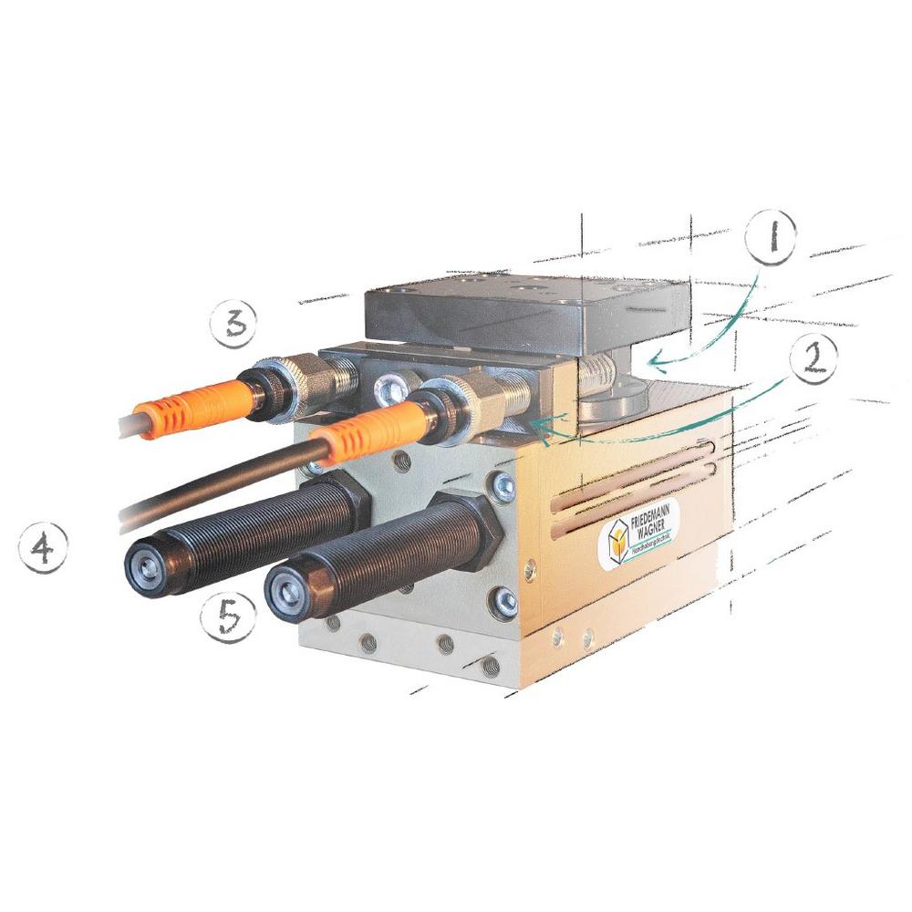 Ein externer Anschlag treibt die Bauhöhe. Im technischen Aufbau der Friedemann Wagner GmbH ist der Anschlag sogar explizit Bestandteil des gefrästen Gehäuses aus hochfestem Aluminium.