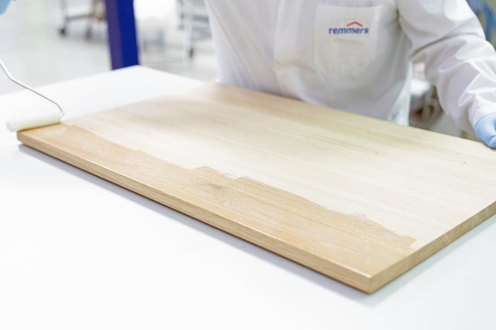 Das Produkt lässt sich auf allen im Innenausbau gängigen Hölzern und Furnieren anwenden. Und zwar so: