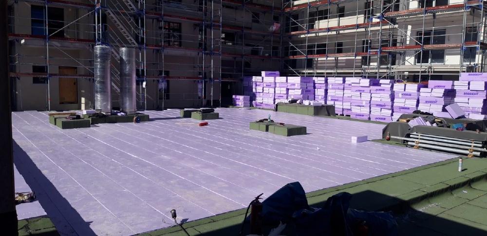 Ein ungedämmtes Flachdach liegt häufig bei einem U-Wert von rund 2,0 W/m²K. Wird dieselbe Fläche als Umkehrdach mit 200 Millimetern XPS ausgeführt, sinkt der U-Wert auf etwa 0,20 W/m²K. Damit verringern sich die Transmissionsverluste typischerweise von rund 150–200 auf etwa 15–20 kWh je Quadratmeter und Jahr – eine Einsparung von etwa 130–180 kWh pro Quadratmeter und Jahr. (Modellrechnung; reale Werte variieren je nach Aufbau, Nutzung und Standort.)