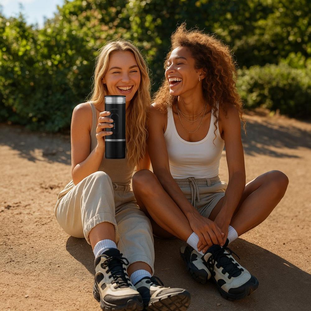 Einfach das Wasser einfüllen, das Kaffeepulver oder die Kapsel einsetzen und dann starten. Kaltes Wasser heizt die Maschine von selbst auf die richtige Brühtemperatur. Das heiße Wasser spart Zeit und schont den Akku. Nach ein paar Minuten genießt man frisch gebrühten Espresso!