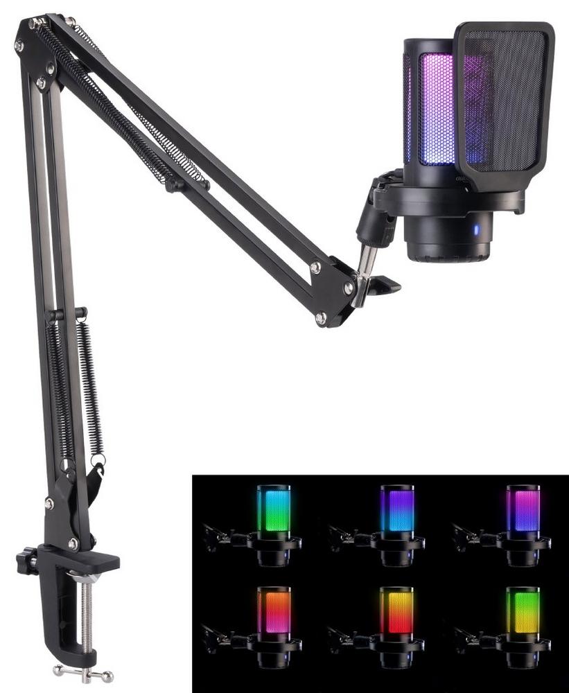 auvisio Gaming-USB-Kondensator-Mikrofon mit Noise Cancelling, RGB, Gelenkarm
