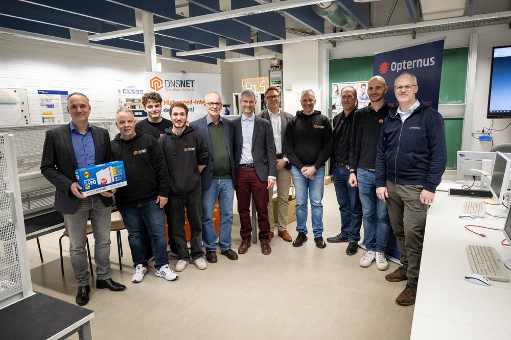Am 4. Dezember gab es deshalb große Freude bei den Anwesenden aus dem Ausbildungsbereich, lokaler Politik und Wirtschaft, denn zusammen mit den Partnerfirmen FRITZ! und opternus fand die feierliche Übergabe des neuen DNS:NET Glasfaserlabors für das Oberstufenzentrum statt. Fazit: Für die digitale Zukunft braucht es mehr denn je schnelle Glasfasertechnologie und schlaue Köpfe, die sich mit dem Einsatz in Forschung, Lehre und Wirtschaft im Detail auseinandersetzen.
