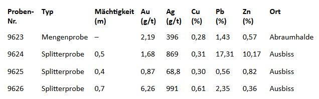 Diese Daten bestätigen das Vorhandensein eines soliden Multi-Metall-Systems mit bedeutendem Silber-Gold-Potenzial in mehreren Gängen innerhalb des Konzessionsgebiets. Geplant sind weitere Kartierungen und Untertage-Probenahmen, um die Ziele für spätere Bohrphasen zu verfeinern.