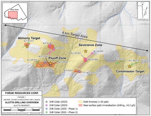 PJ Murphy, CEO von Forge Resources, erklärte dazu wie folgt: „Wir sind immer wieder beeindruckt von den Ergebnissen aus der Zone Payoff, die sich mit jedem Bohrloch in Größe und Gehalt erfolgreich weiterentwickelt. Außerdem freuen wir uns, die Ergebnisse der Entdeckungsbohrungen in der Zone Alimony bekannt zu geben, die die großflächige Ergiebigkeit des Mineralisierungssystems in Alotta bestätigen. Wir warten mit Spannung auf die verbleibenden Bohrergebnisse für 2025 aus der Zone Commission, die wichtige Daten für die Steuerung zukünftiger Explorationsarbeiten liefern werden. Wir freuen uns auf die Feldsaison 2026, um das Potenzial des Konzessionsgebiets weiter zu erforschen und unsere Pipeline vielversprechender Ziele in dem Konzessionsgebiet weiter voranzutreiben.“