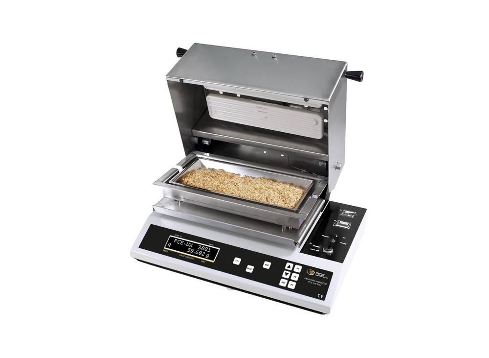 Ein entscheidender konstruktiver Vorteil für die Holz- und Agrarbranche ist zudem die integrierte große Probenschale des PCE-UX 3081. Diese erlaubt es, auch bei voluminösen oder leichten Stoffen wie Holzspänen und Futtermitteln eine ausreichend große Probenmenge flächig auszulegen. Eine weite Verteilung der Probe ist für die Messqualität essenziell, da nur so eine homogene Erwärmung ohne Hitzestau oder unvollständige Trocknung im Probenkern garantiert werden kann. Durch diese Kombination aus hochsensibler Sensorik für Minimalfeuchte und einem großzügigen Probenmanagement bietet der PCE-UX 3081 eine Prozesssicherheit, die herkömmliche Labormethoden oft vermissen lassen.